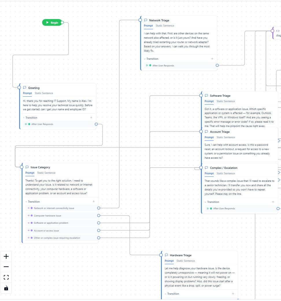 Highlight powerful AI capabilities including dynamic conversation flows, voice-enabled widgets, and intelligent triage for IT support. Unlike static workflows, the triage system analyzes customer symptoms and automatically routes or escalates issues to the right team. The platform also integrates with ticketing systems like WHMCS, ServiceNow, and Zendesk, while enabling seamless phone and SMS number provisioning with one-time passcode verification for secure communication.